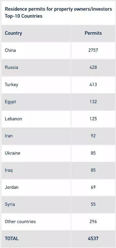 由上图中可看出,2019年截止到6月4日一共有4537组家庭获发希腊黄金签证。中国家庭以2757组稳居第一,占总量超过60%,其次是:俄罗斯、土耳其、埃及、黎巴嫩、伊朗、乌克兰、伊拉克、约旦、叙利亚。