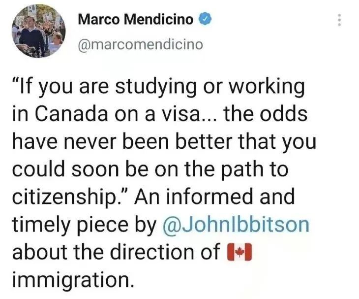 —— 2021年加拿大移民部长Marco Mendicino的推文