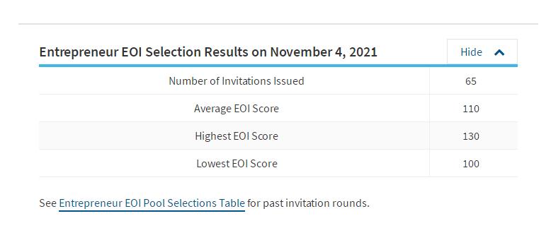 2018.06.14当地时间2021年11月4日,加拿大萨省移民局就企业家移民类别进行了最新一次筛选,也是临时政策的最后一次筛选。本次筛选人数为65人,筛选最低分为100分,比上次下降10分。