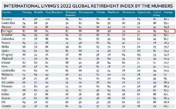 近日,美国《国际生活》(International Living)杂志公布了2022年最适合退休生活的国家排名,葡萄牙位列第四,成为欧洲第一大适合居住和养老的国家。