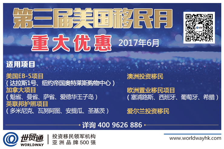 世贸通正重磅推出“第三届美国移民月”重大优惠活动,活动期间,签约世贸通移民集团主流投资移民项目,均可享受重磅优惠,更有多场海外投资、互动沙龙、移民政策解析会、客户答谢会等主题活动等着您,活动多多,优惠多多,敬请关注参与!