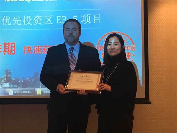 EB-5 联合高层授世贸通集团青岛公司“曼哈顿9号豪华精品酒店”大中华区独家代理证书