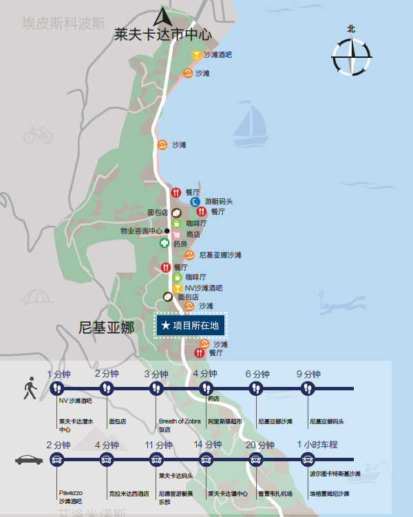 项目距离尼基亚娜市中心仅五分钟步行,市中心汇聚各式各样的设施和商店,各类必需品一应俱全,是游客理想的度假天堂。