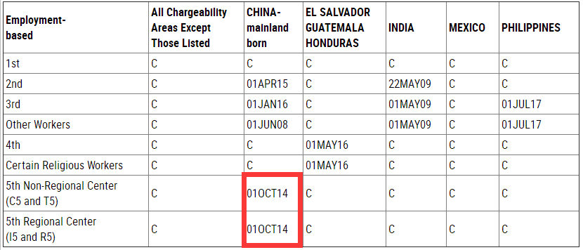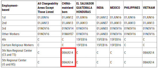 根据A表,2018年9月份,对于已经取得I-526批准且优先日早于2014年8月8日之前的投资者,可以进入最终的广州领馆面试或是递交I-485身份调整申请,并获得绿卡。