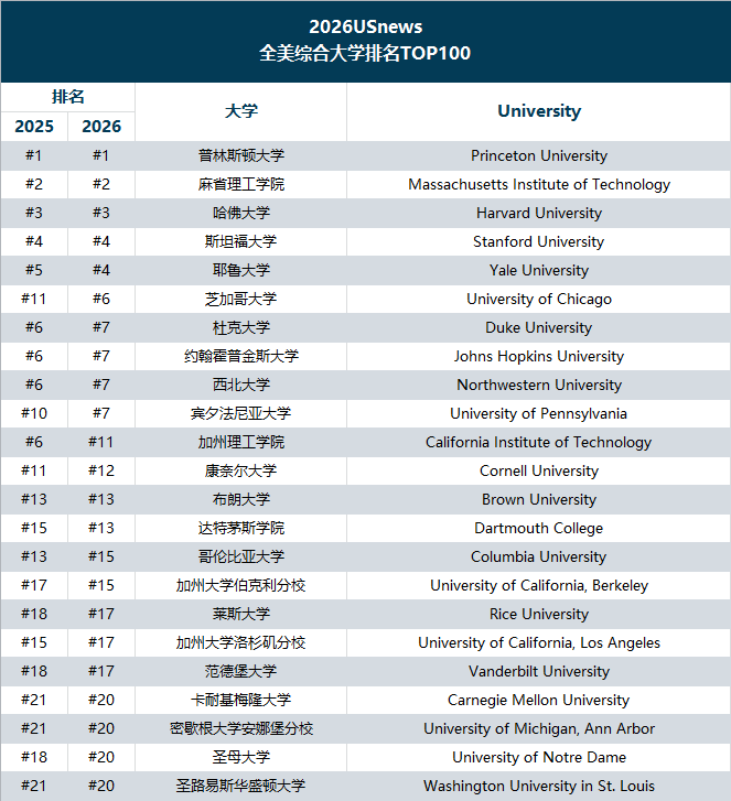 北京時間9月23日,世界最具影響力的排名機構——《美國新聞與世界報道》(U.S. News)正式發佈了2026年全美大學排名。