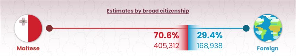 根據馬耳他國家統計局最新人口統計數據表明,馬耳他的人口2024年已達到前所未有的574,250人,其中 29.4%為外國公民。