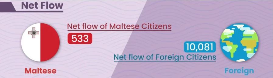 數據顯示,2024 年馬耳他的淨移民數達到10,081人,其中 75% 來自非歐盟國家。這意味着,移民已成為推動馬耳他經濟與人口增長的關鍵力量。
