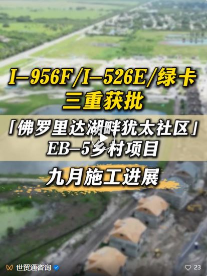 「佛羅里達湖畔猶太社區」EB-5鄉村項目是擁有I-956F獲批、I-526E獲批、綠卡獲批的三重獲批項目,這在市場上是極為罕見的。