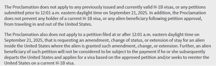 2. 2025年9月21日前提交的H-1B申請繼續按舊規處理。