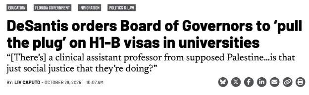 近日,佛羅里達州州長Ron DeSantis宣佈,要求州立大學系統全面停止僱用持H-1B簽證的外籍員工,理由是「應優先僱用本地人」。據美國移民局(USCIS)數據,截至2025年6月30日,佛羅里達州共有超過1900家僱主贊助7200多名H1-B簽證持有者。