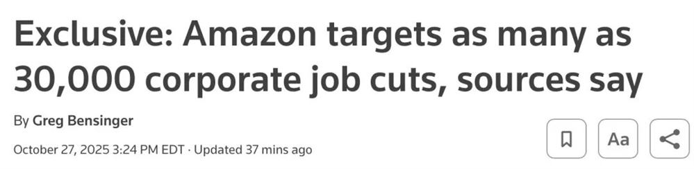 近日,亞馬遜啟動了自2022年以來最大規模的一輪裁員。據報道,此次計劃裁減多達 3 萬名企業員工,約佔其35萬名辦公室職員的10%,涉及人力資源、運營、設備與服務等多個部門。事實上,這並非亞馬遜第一次裁員。早在2023 年,公司就曾分階段裁減2.7萬名員工。