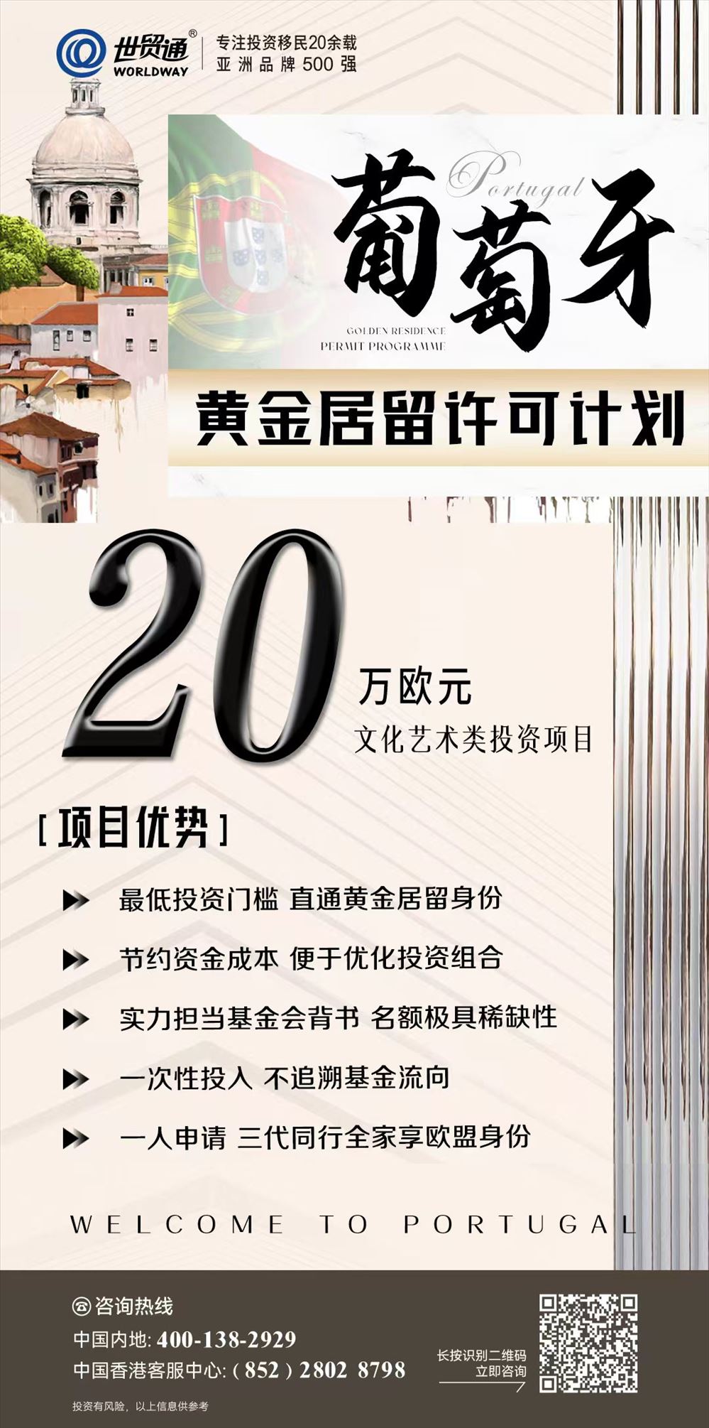 另外,也可通過葡萄牙文化藝術捐贈項目移民葡萄牙。根據法案規定,申請人僅需投資20萬歐元,即可全家三代申請葡萄牙黃金居留身份,低成本便捷獲歐盟護照。