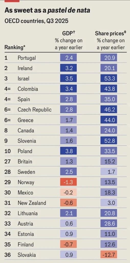 在《經濟學人》連續第五年的「年度最佳經濟體」評選中,葡萄牙脫穎而出,成為2025年全球表現最佳的經濟體。