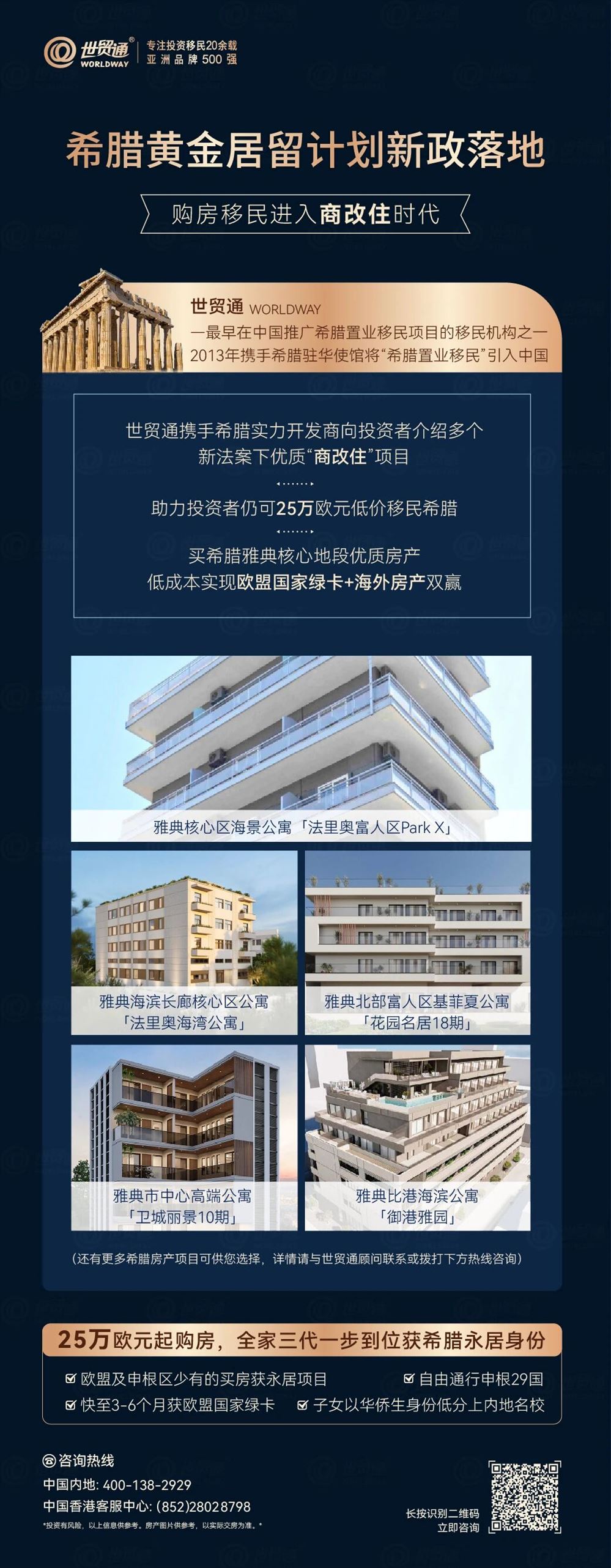 作為目前移民市場上少有的可以快速拿歐盟綠卡的項目,投資者投資25萬歐元起的房產,即可一步到位獲歐盟國家希臘永居身份!