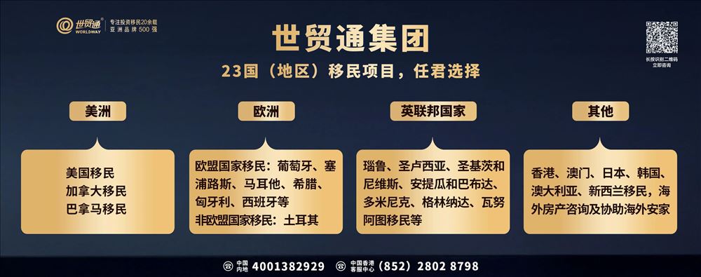 目前,世贸通可提供覆盖23个国家和地区的身份规划项目,投资额低至3.9万欧元起,全家即可一步到位获得第二身份。