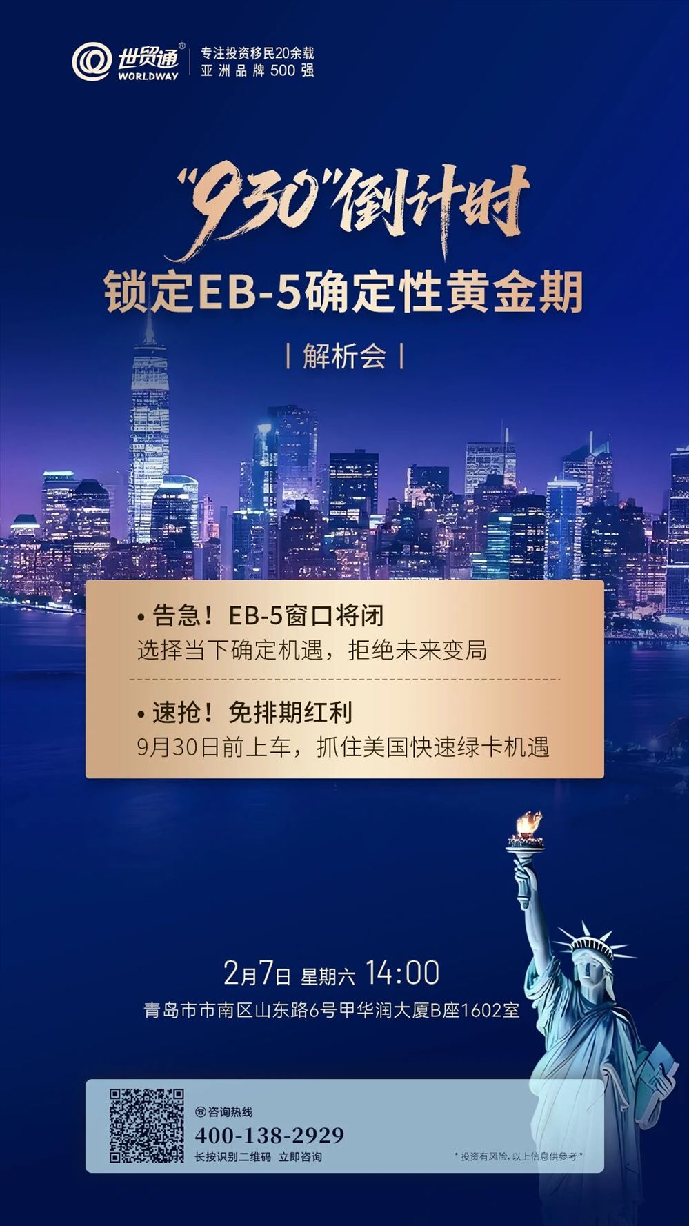 世貿通首頁 > 最新活動 > 930倒計時 鎖定EB-5確定性黃金期