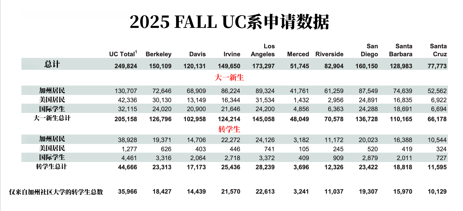 2025年秋季UC系所有院校申请者共249,824人,较2024年减少约0.5%。