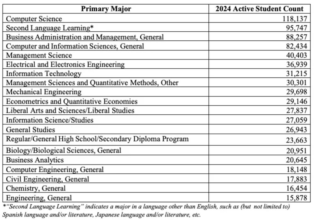 计算机科学独领风骚,计在读人数达 118137人,远超其他专业,是中国留学生最集中的方向;