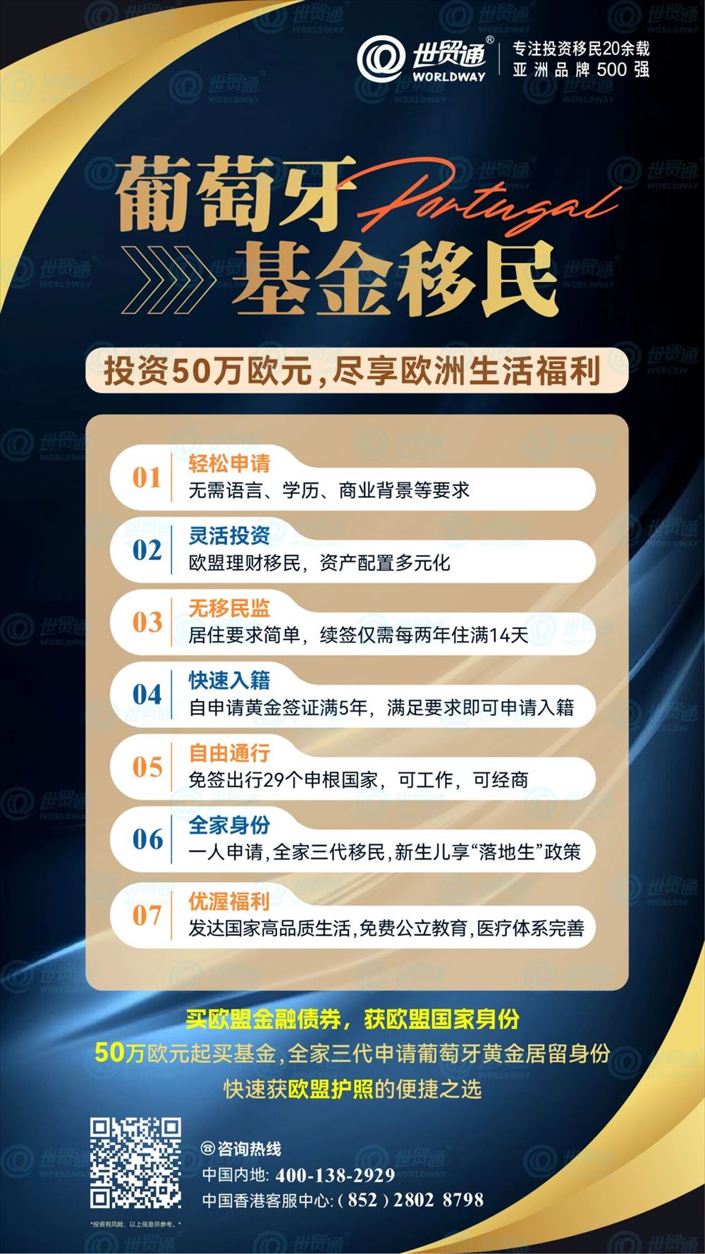 如需了解更多葡萄牙移民详情,详询中国内地:400-138-2929,中国香港客服中心:(852)2802 8798