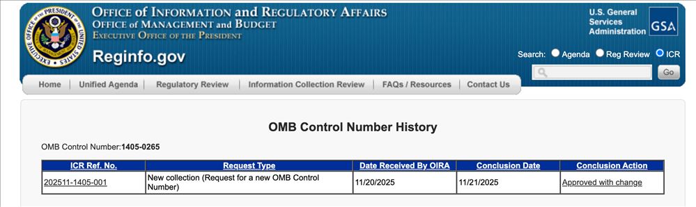 • 2025年11月20日,金卡签证申请表DS-260G提交OMB审批,并已获加急审批通过