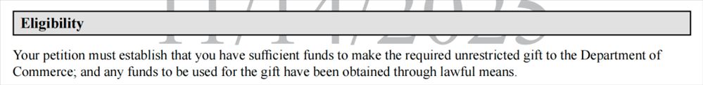 I-140G表格明确指出:“the required gift is separate from the required fee”捐赠金额与申请费完全独立。另需缴纳 15,000 美元申请费用。