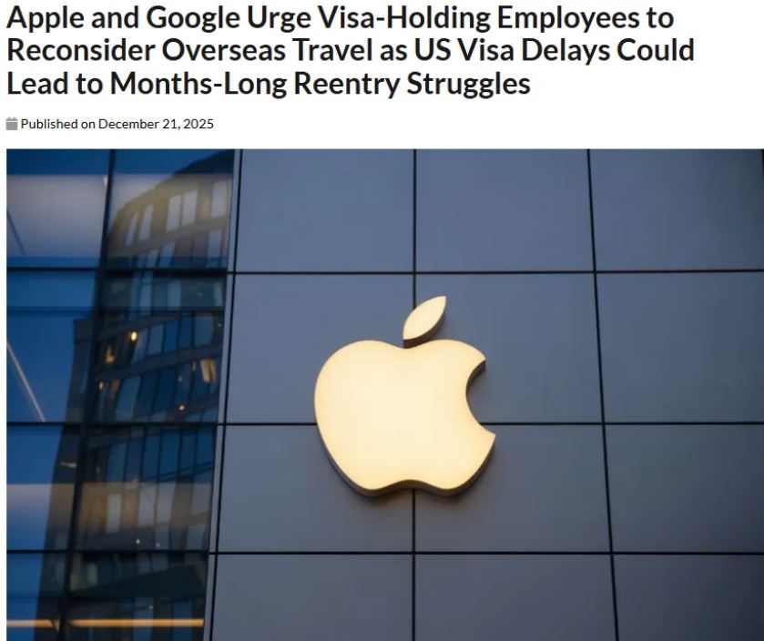 近日,谷歌与苹果先后向内部员工发出紧急提醒:持有H-1B签证的员工谨慎离境,重返美国或将延误最长一年!