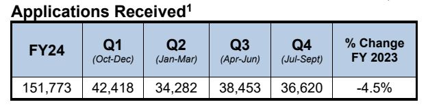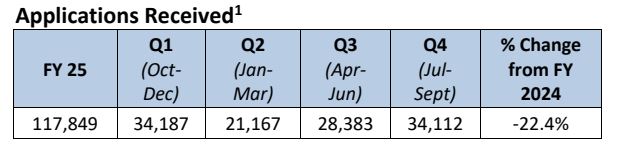 • 2025财年第四季度PERM申请量34,112份,较2024财年同比下降6.8%。