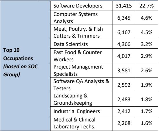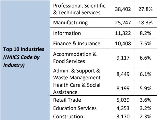 • “专业、科学和技术服务”行业以27.8%的占比遥遥领先,显示美国仍在持续引进科技人才;