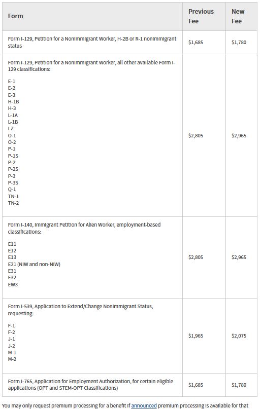 • H-1B、L-1及O-1等工作签证:加急费用将从当前的2,805美元攀升至2,965美元。