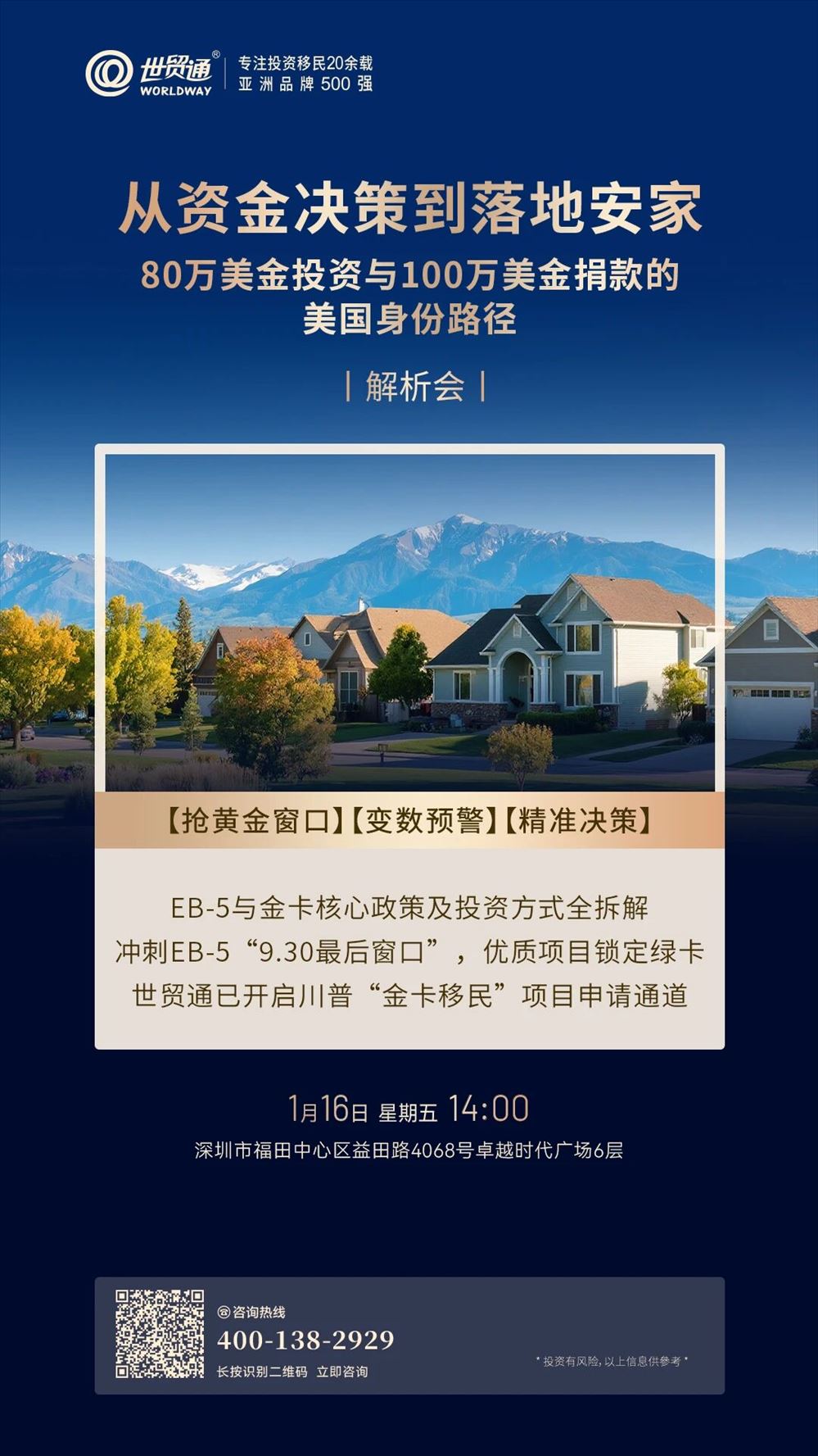 世贸通首页 > 最新活动 > 从资金决策到落地安家 80万美金投资与100万美金捐款的 美国身份路径