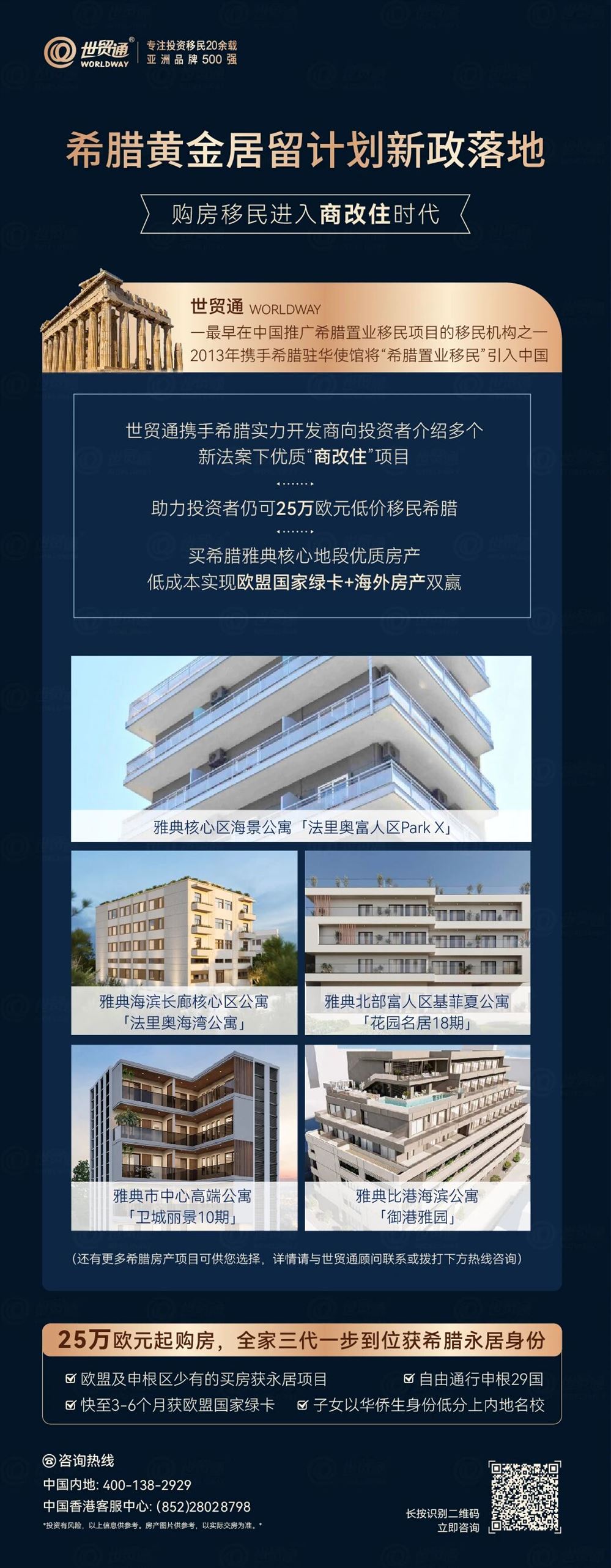 目前市场上符合希腊黄金居留项目申请法案、能快速过户的优质“商改住”房源不多,建议广大有意向的投资人把握机会,早选房早过户,早拿身份早安心!
