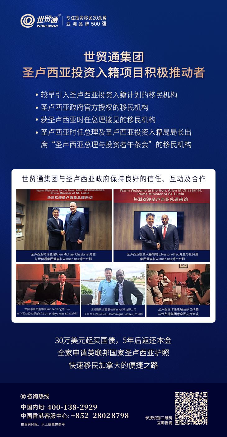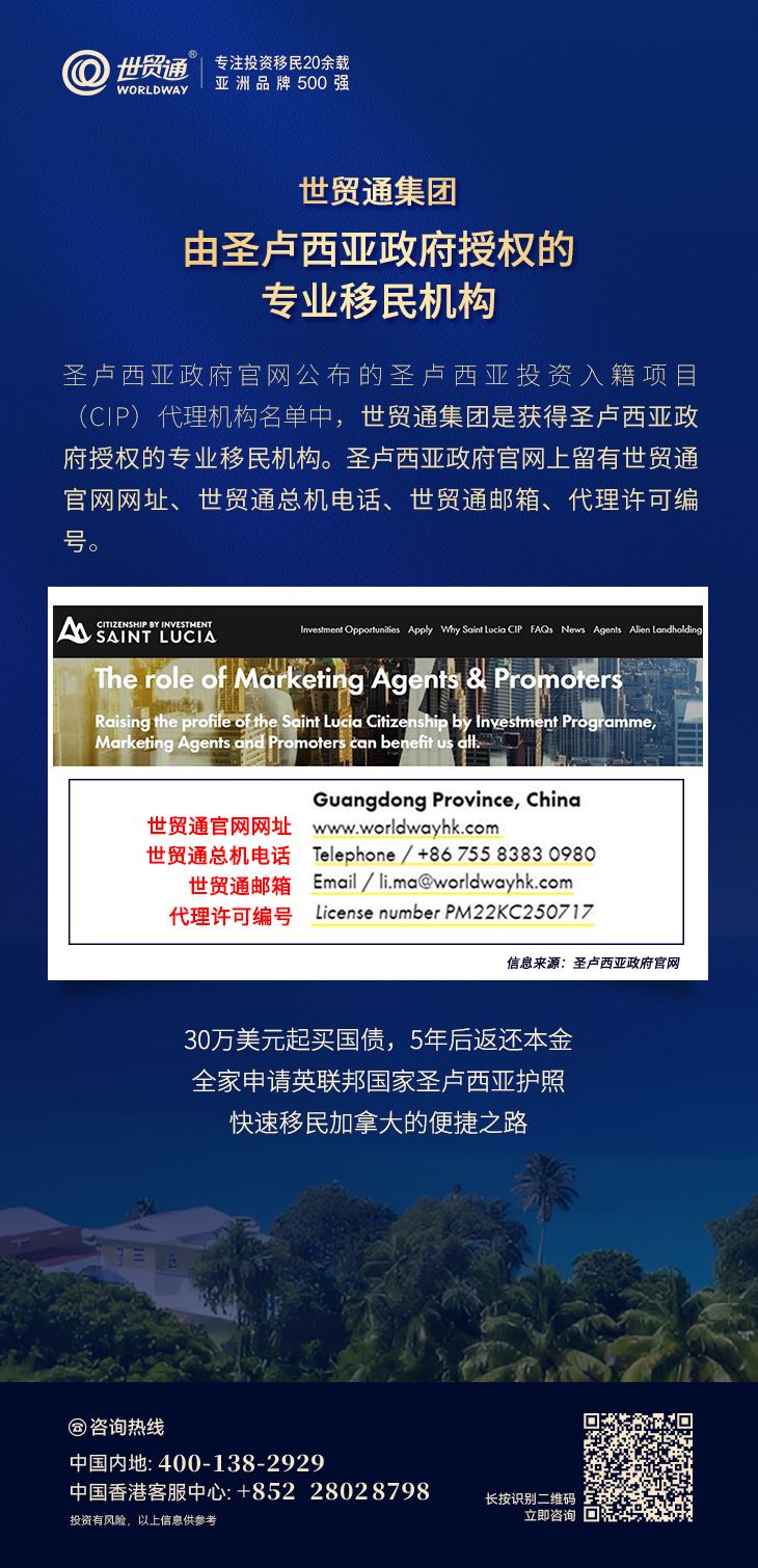 作为英联邦国家投资入籍项目的积极推动者,早在本世纪初就已开展英联邦国家快速入籍项目推广,是最早在中国推广英联邦国家投资入籍项目的移民公司之一。在英联邦护照项目推广方面,世贸通拥有丰富的经验和众多成功案例。世贸通集团是由圣卢西亚政府授权的专业移民机构,值得您选择