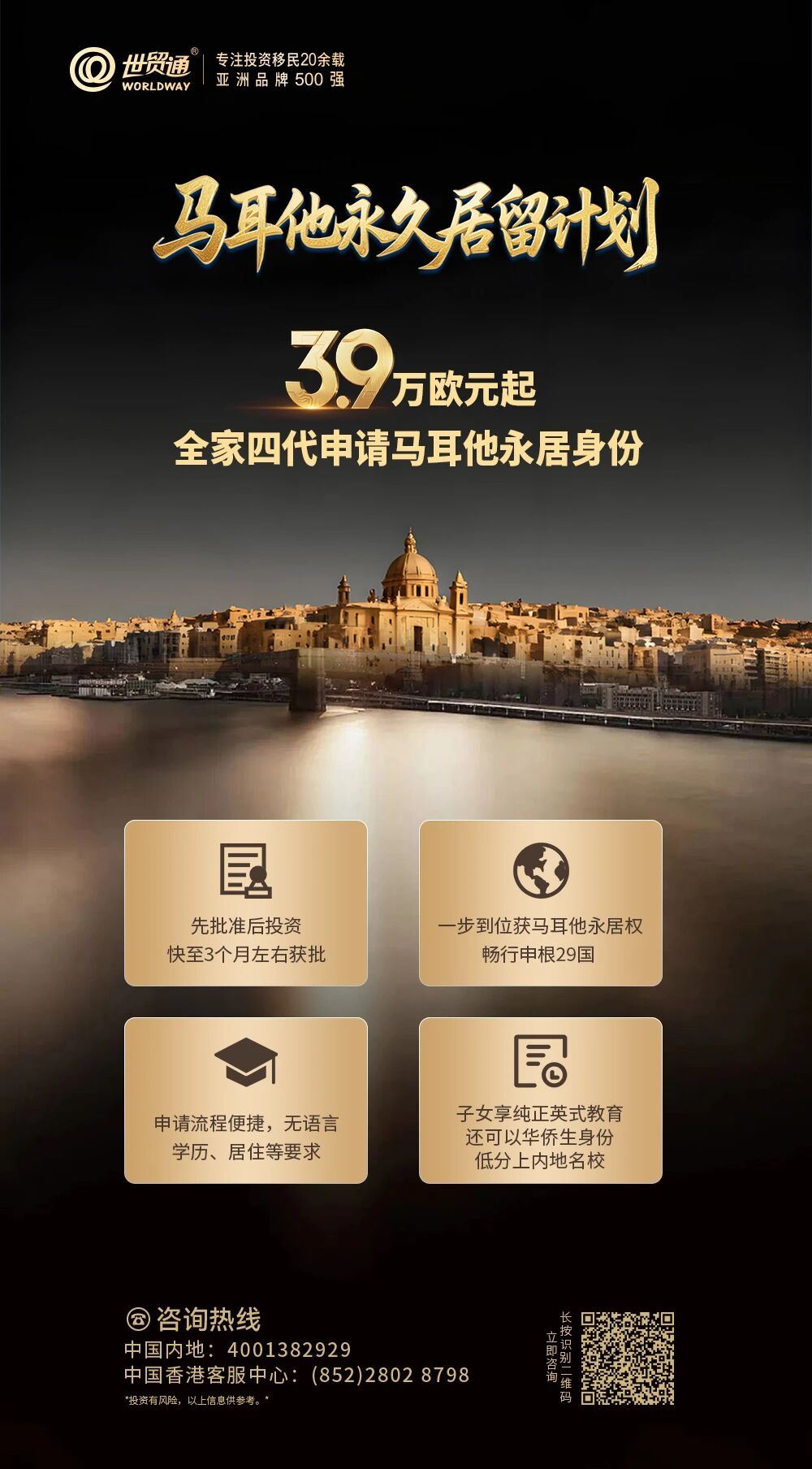 亚洲品牌500强世贸通集团,专注投资移民20余载,作为欧洲投资移民项目的积极推动者,多年来一直与马耳他政府保持良好互动,是您办理马耳他移民的放心之选。