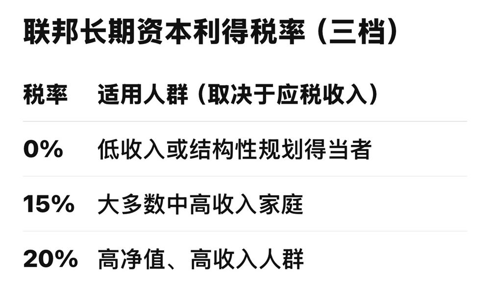 这意味着:对于部分高净值家庭,长期资本利得的“真实联邦税负”可能是:20% + 3.8% = 23.8%